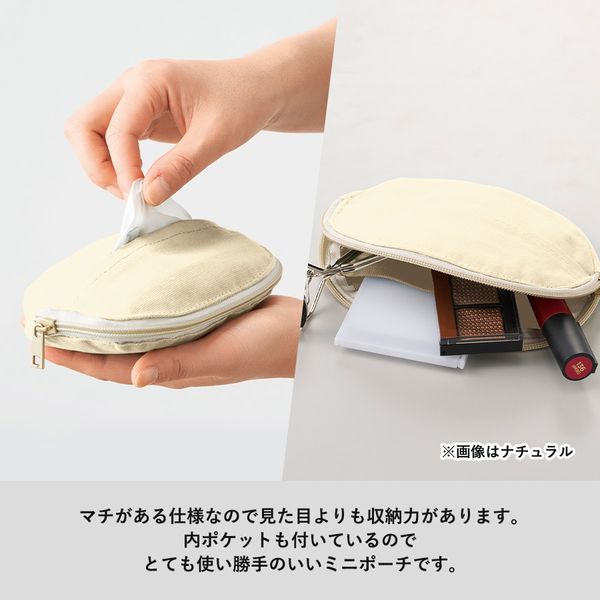 内ポケット付きで、ティッシュのほか持ち歩きコスメや小物収納にも便利です。