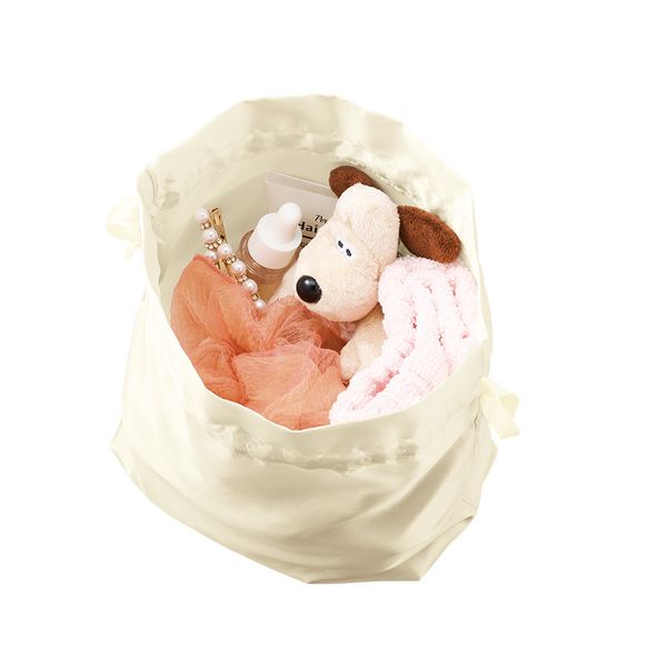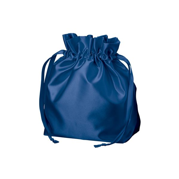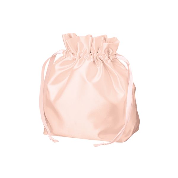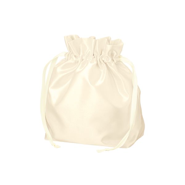 光沢感が美しいサテン素材を使用した巾着です。上品なツヤ感と、口元のフリルデザイン、さらにサテンリボンを組み合わせることで、高級感と華やかさを兼ね備えた仕上がりになっています。ギフトラッピング用としてはもちろん、ショップのオリジナルアイテムとしても人気の高い一品です。