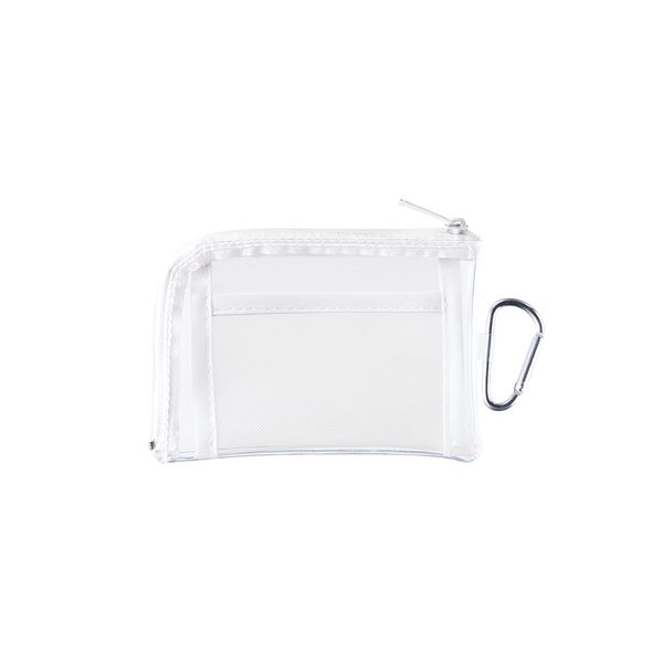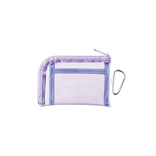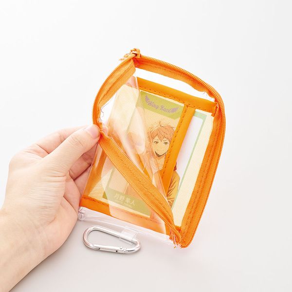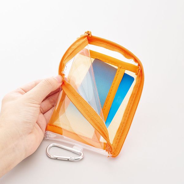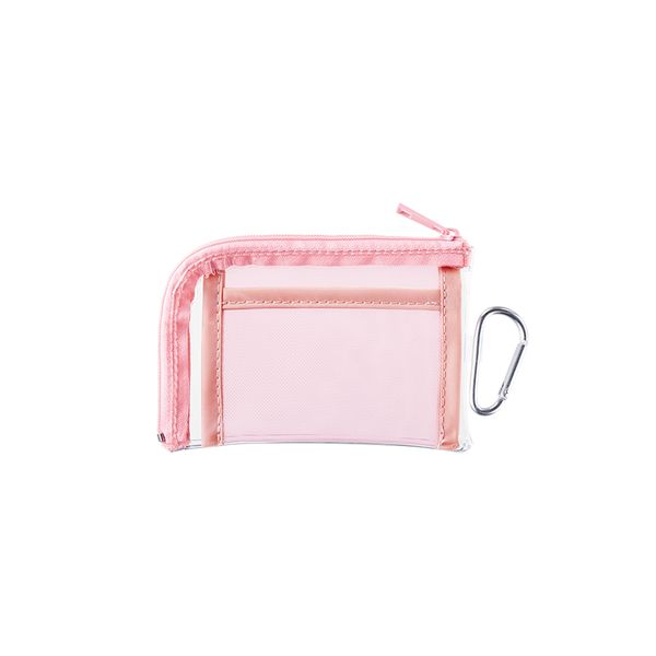 推し活にぴったりな、メッシュポケット付きのクリアミニポーチです。内側のポケットには標準サイズ(W88×H62)のトレカやアクスタをしまえて、外側のクリア部分にはお気に入りのグッズを見せながら持ち歩けます。缶バッジもメッシュにピンを通せば、好きな角度で固定できるのが便利。さらにカラビナ付きなので、普段使いのバッグやオリジナルバッグにチャーム感覚で付けて楽しめます。